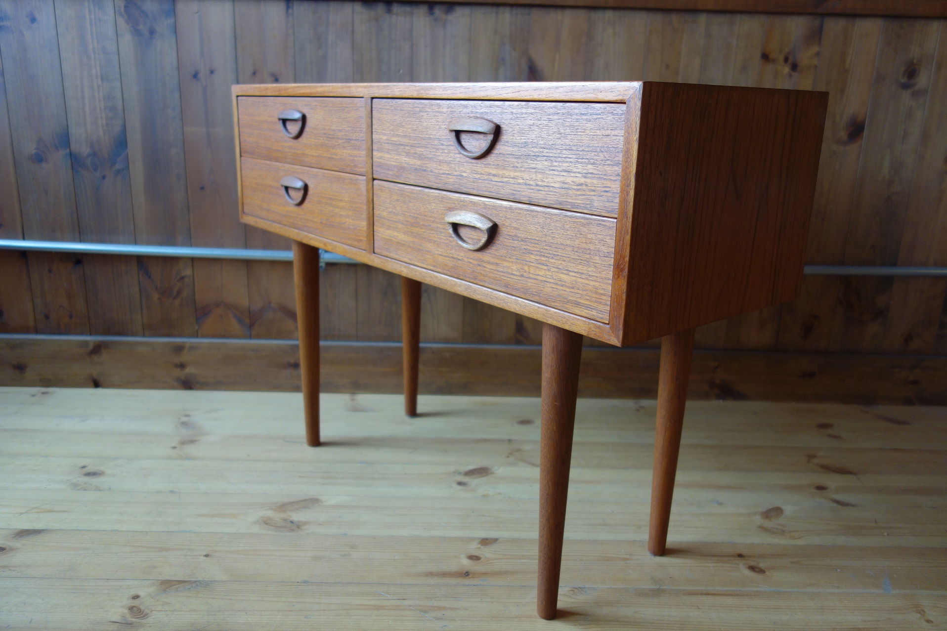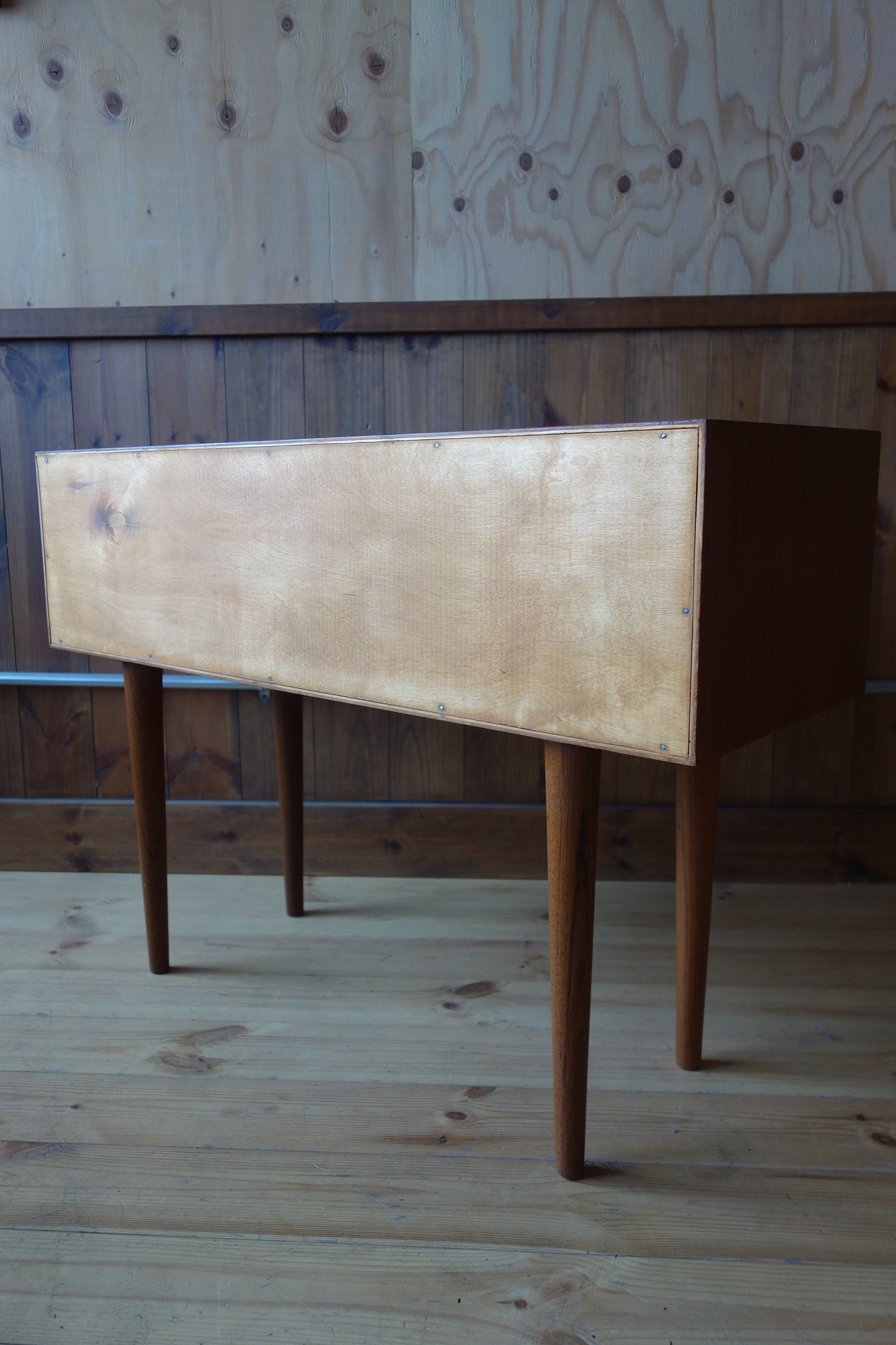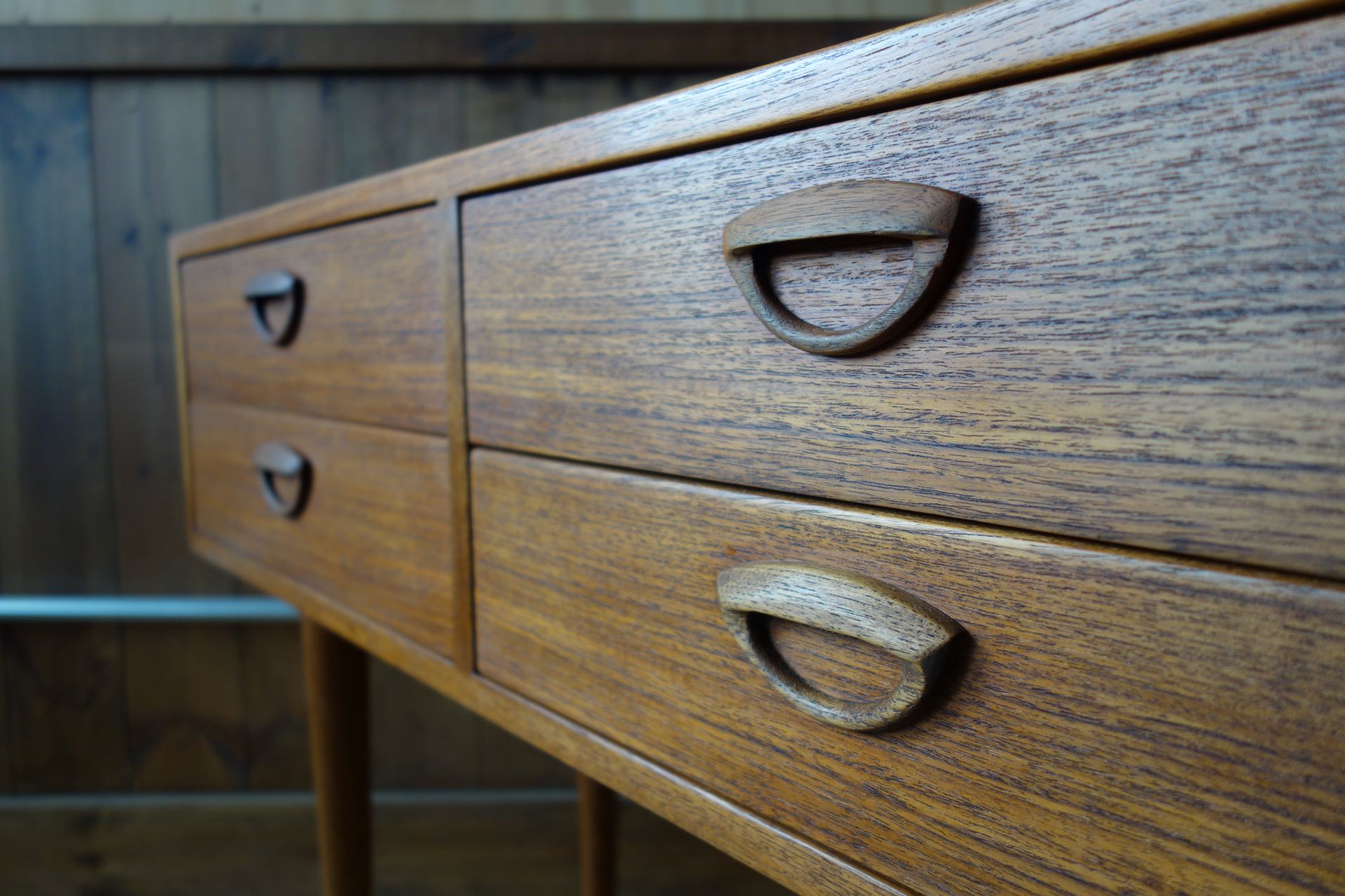 Kai Kristiansenの家具は、昔から椅子より箱物の方が現地では評価が高く、価格も高かったです。今では希少なアイテムになっていますので、なかなか入手が難しいアイテムでもあります。非常に作りも良く、しっかりとした家具で、長い脚と引き出しの持ち手のデザインが特徴的なチェストです。