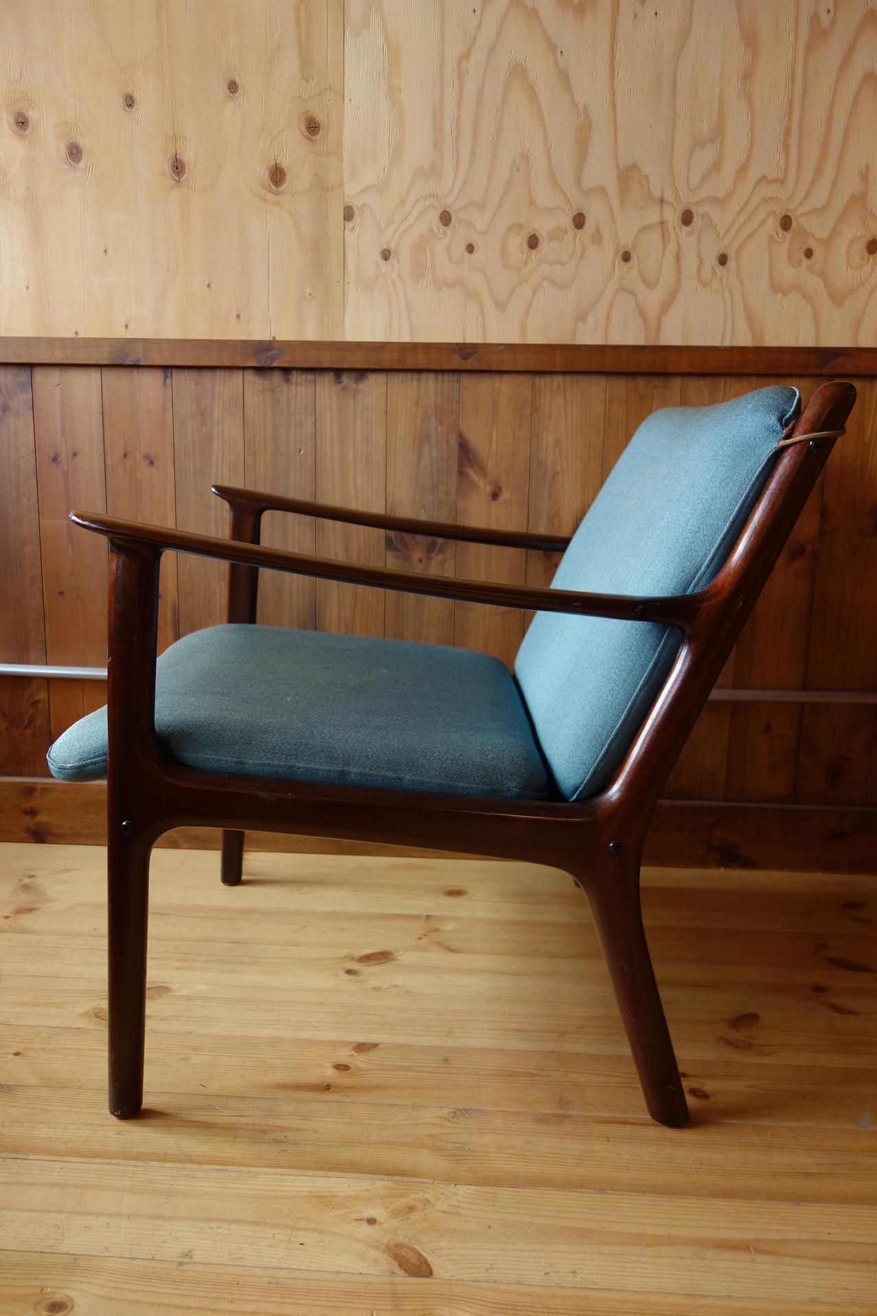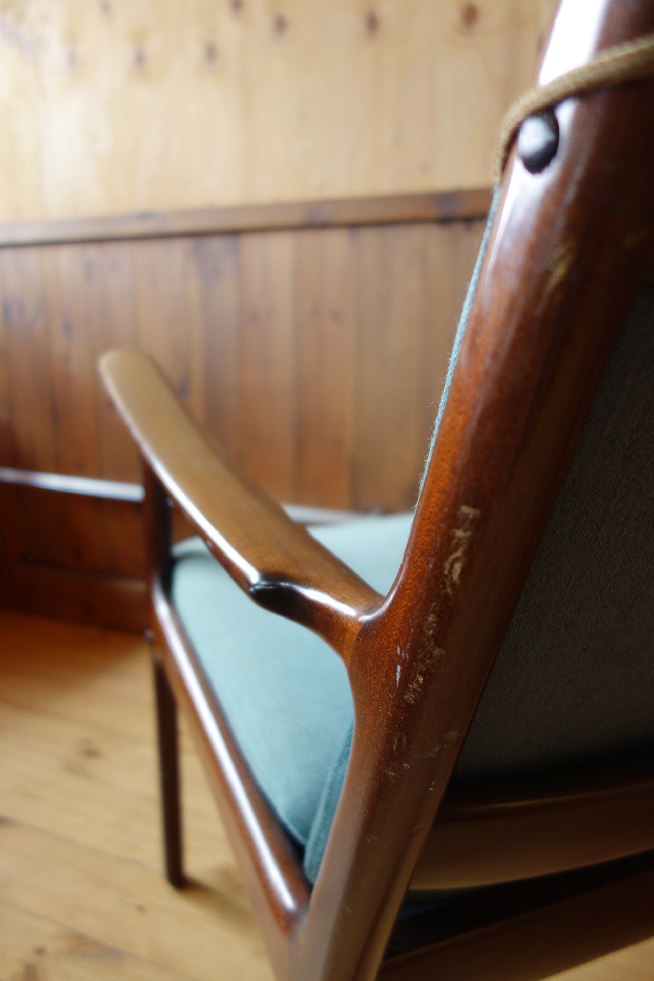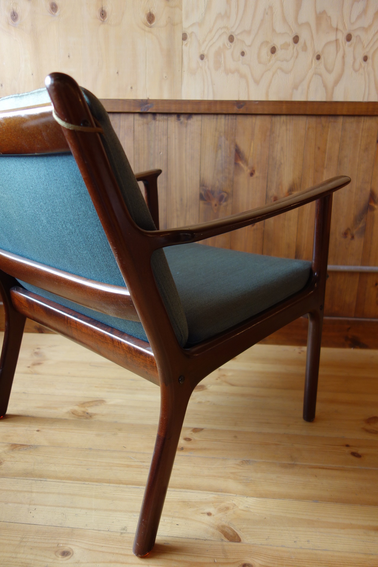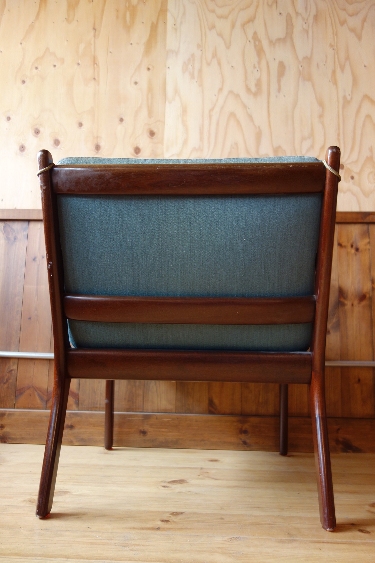 デンマークのデザイナーでありながら、教授でもある"Professor" Ole Wanscherにより1962年代にデザインされたEasy Chairです。安楽性よりも、しっかりと座っても苦にならないような設計の椅子と言えます。そもそもWanscherのEasy Chairは、そうしたスタイルばかりなのですが・・・メーカー"P.Jeppesen Mobelfabrik"社によって制作・販売されたものです。素材は、デンマークの家具では、あまり使用されない「マホガニー」で、座面は基本的にはウレタンフォームですが、お好みでお選びいただけます。本体のマホガニーも、仕上げ方で色合いや風合いが変わりますので、お客様のお好みに合わせて仕上げ直します。