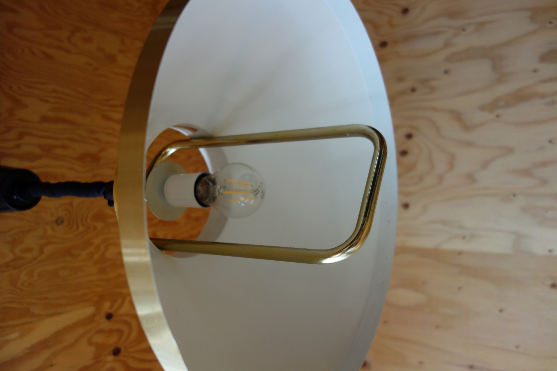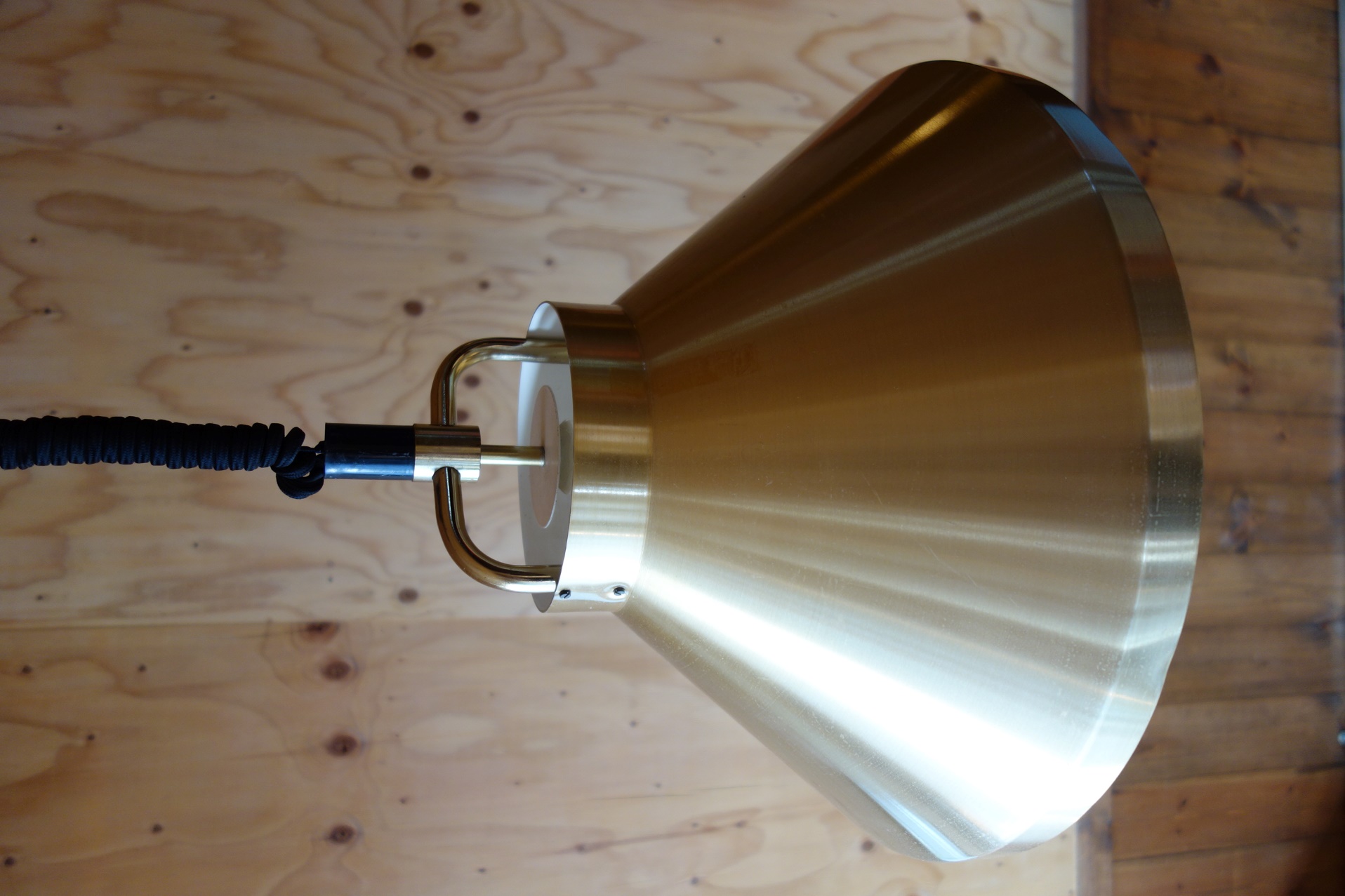 デンマークのデザイナー "Johannes Hammerborg" デザインのハンギングランプです。現状、上げ下げができる構造になっていますが、パーツの劣化が見られますので、新しい固定式のコードに交換いたします。コードの色、長さはお選びいただけます。