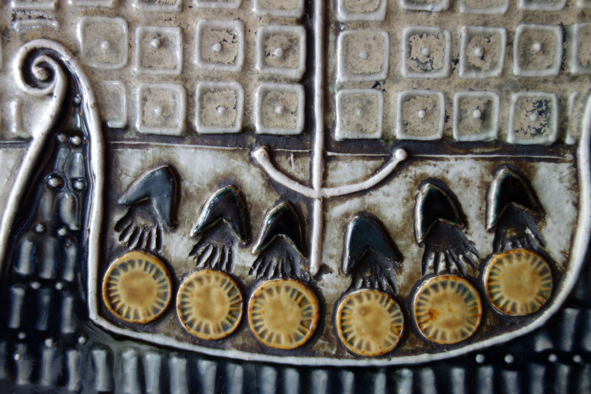 スウェーデンの陶芸家 Lisa Larson の陶板です。リサらしいバイキングの絵柄の、この陶板は「Unik」というシリーズの「Skepp」(船)という図柄になります。非常に可愛らしくも美しく、北欧を思い起こさせるアイテムです。