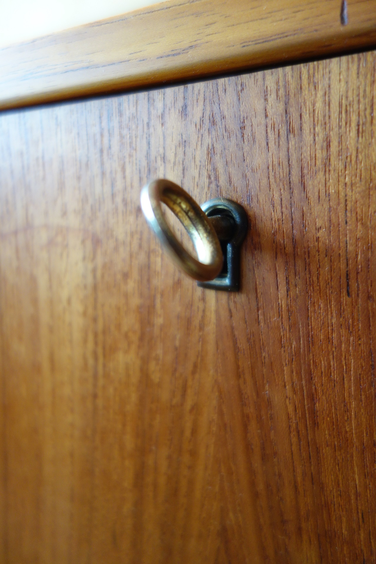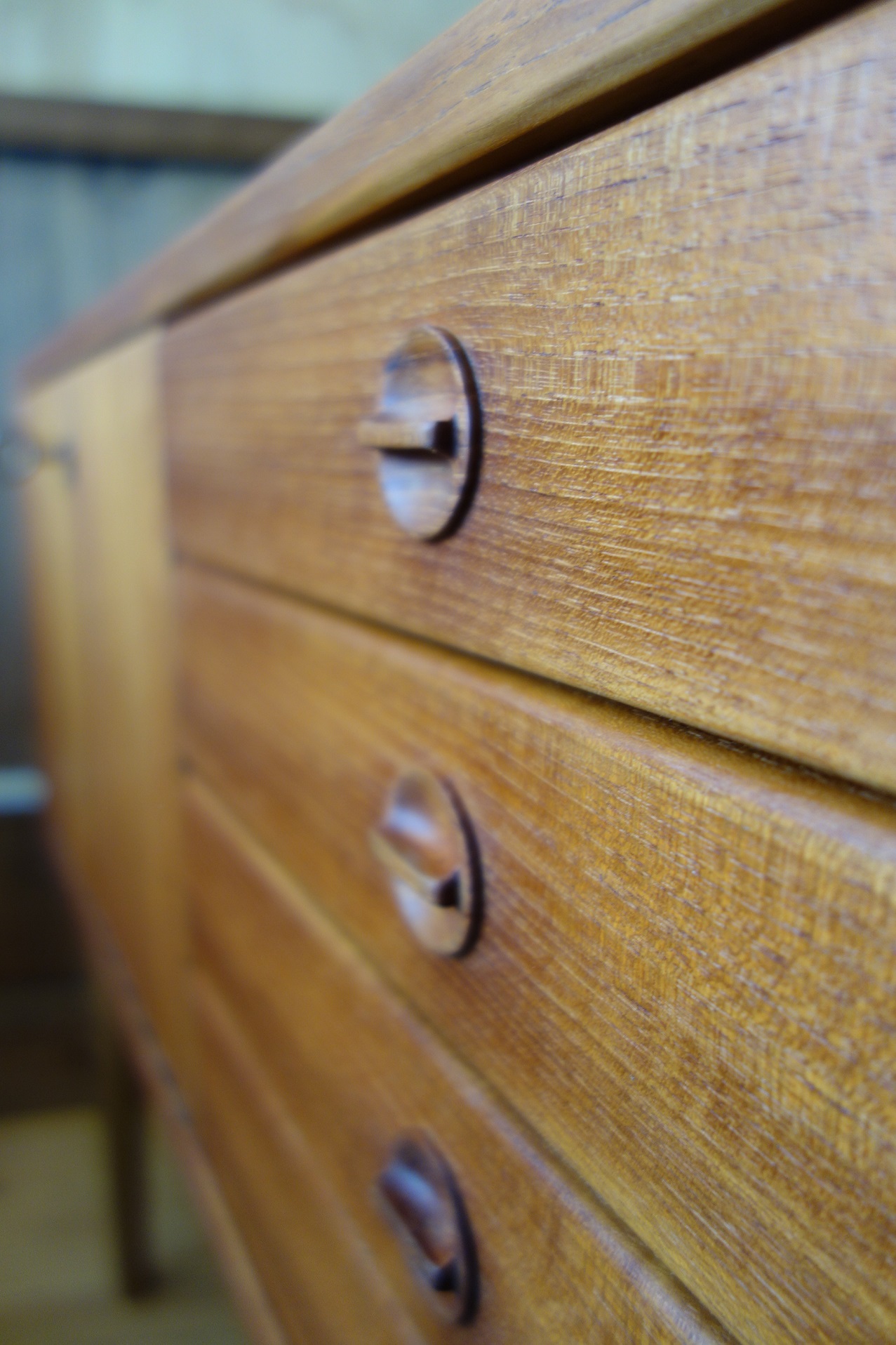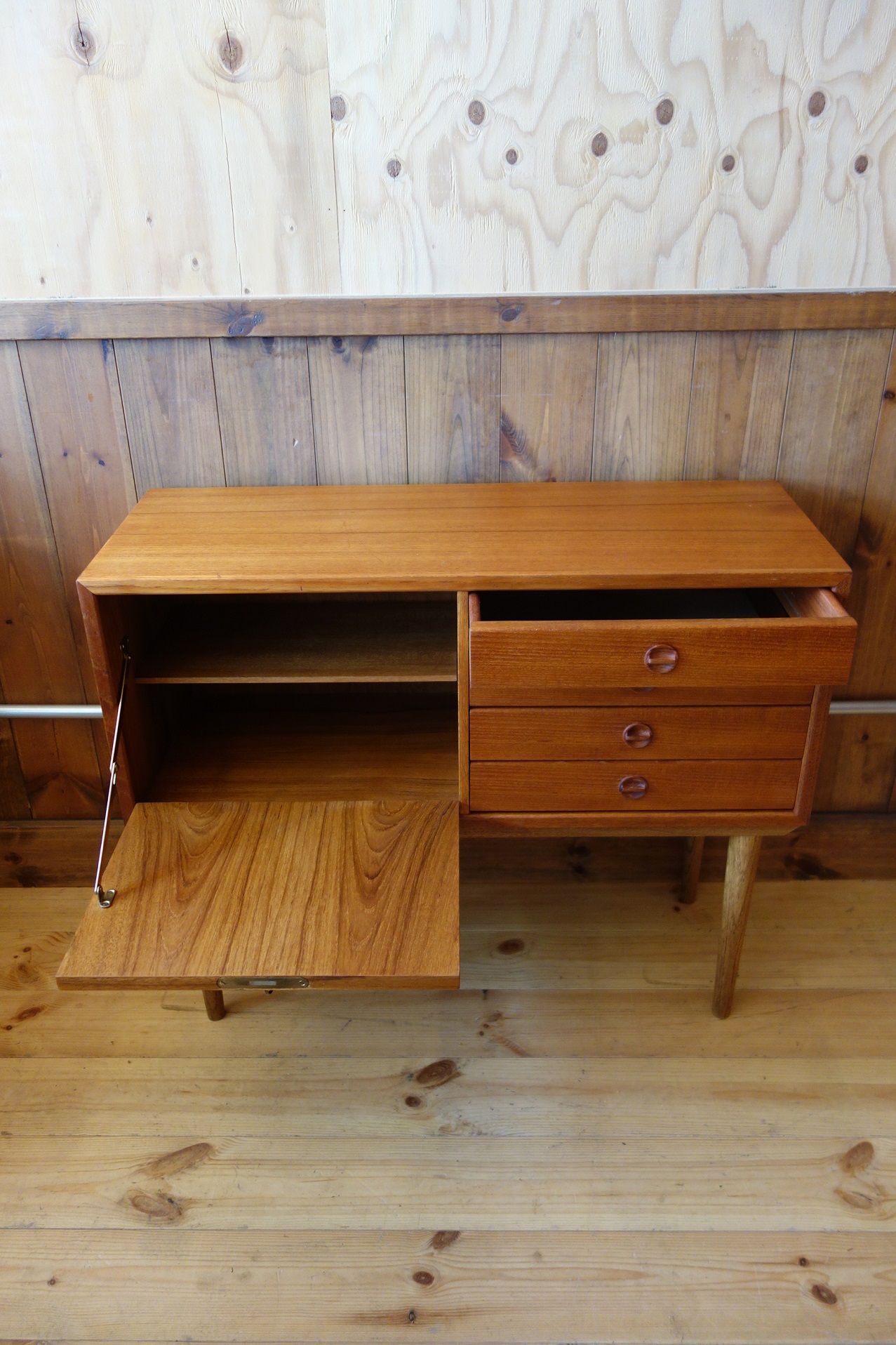 珍しいサイズの小さなサイドボードです。背面のパーツから、元々、壁付けの家具かと思われ、脚はありませんでしたので、オーク材で製作し、取り付けました。