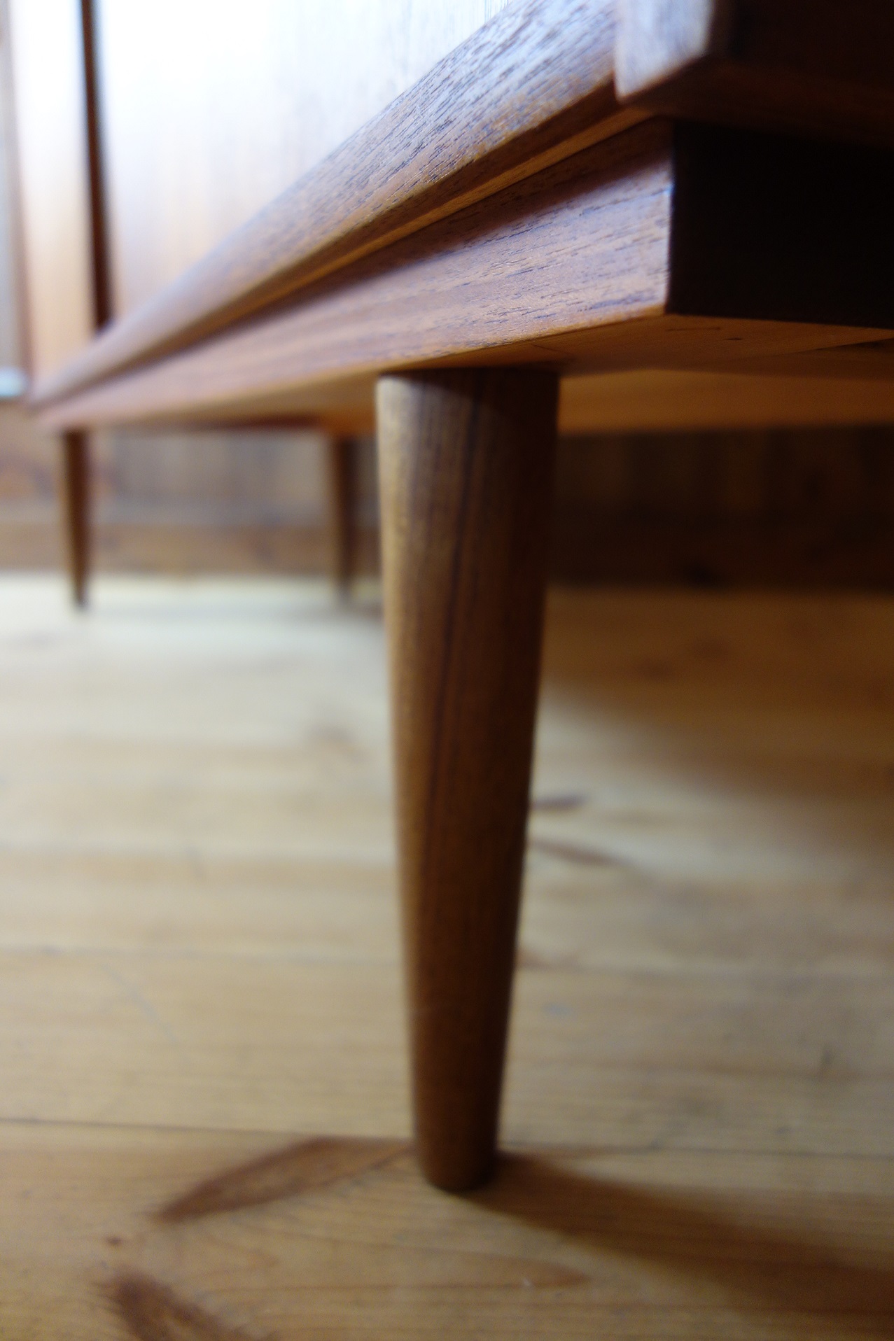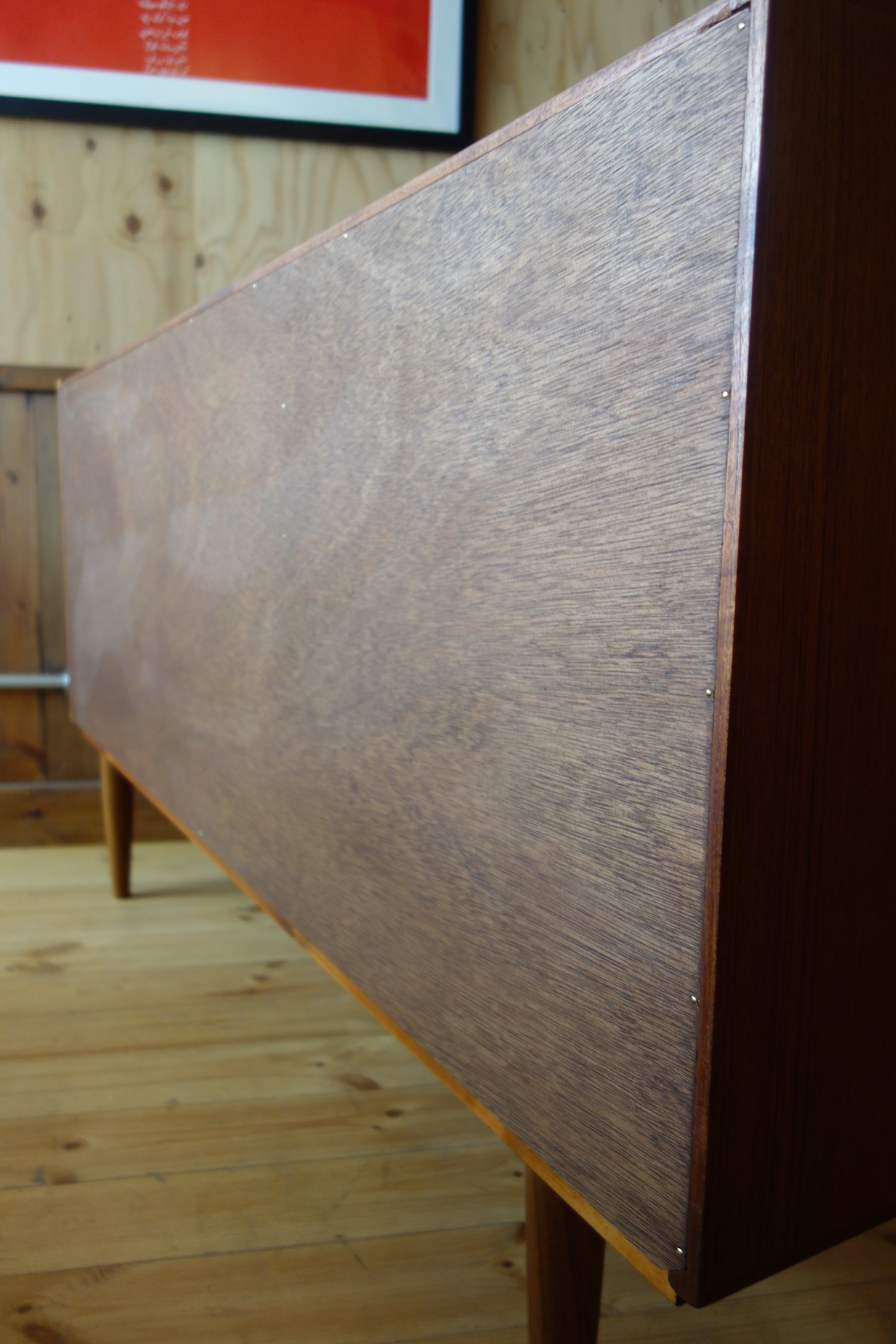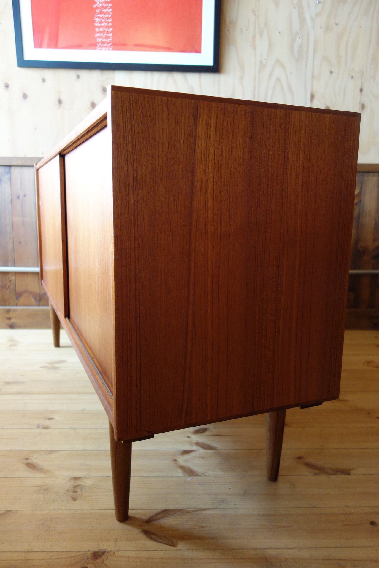 デンマーク製のサイドボード/カップボードです。細部の造りが非常に良く、背面のエッジまで、丁寧な造りでどの角度から見てもシンプルながら美しい家具です。大きさも、少し珍しいサイズで、ワイドが150cmを下回りながらも、小さ過ぎない「丁度良い」サイズ感になってます。長年、ヨーロッパを中心に、ミッドセンチェリーの家具を扱っていますが、数本しか見ないサイズと造りの良さかと思います。