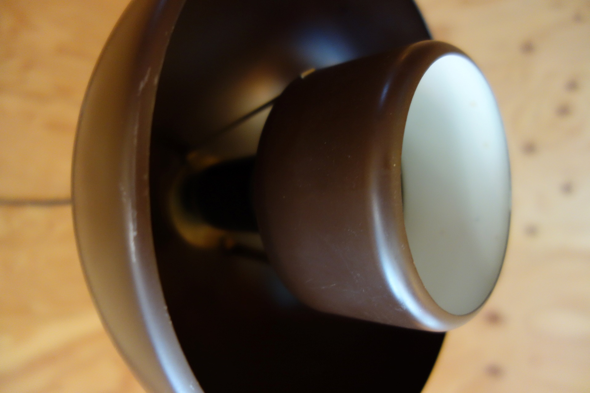 何とも言えないブラウンの小振りな照明は、内側、外側の二重構造になっていて、見る角度で表情が変わってきます。ペアでお使い頂きたいアイテムですが、単体での販売も承ります。