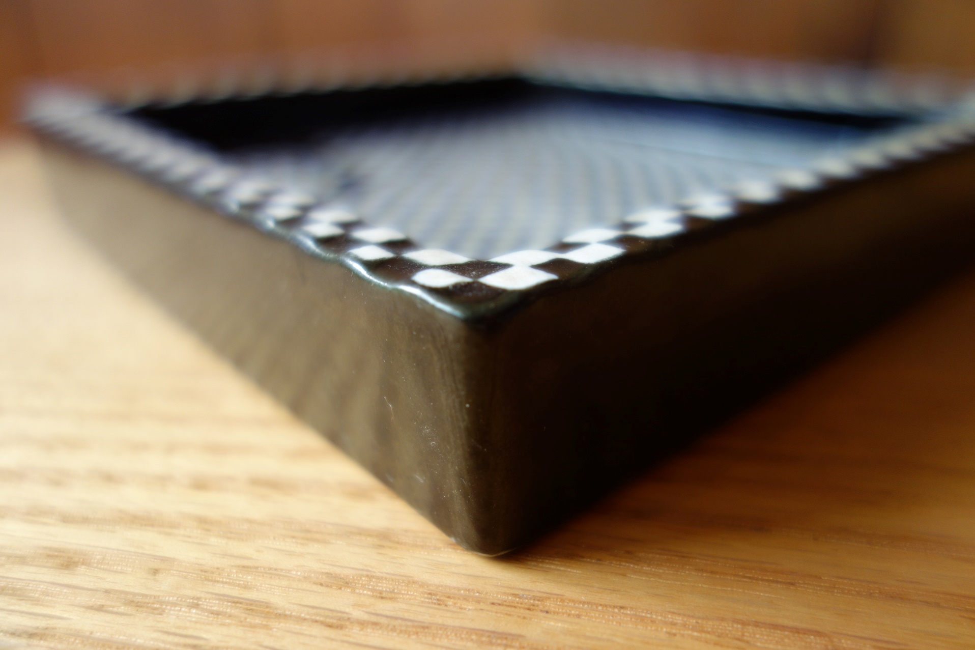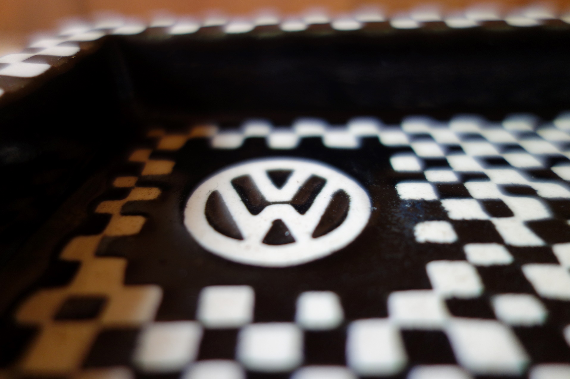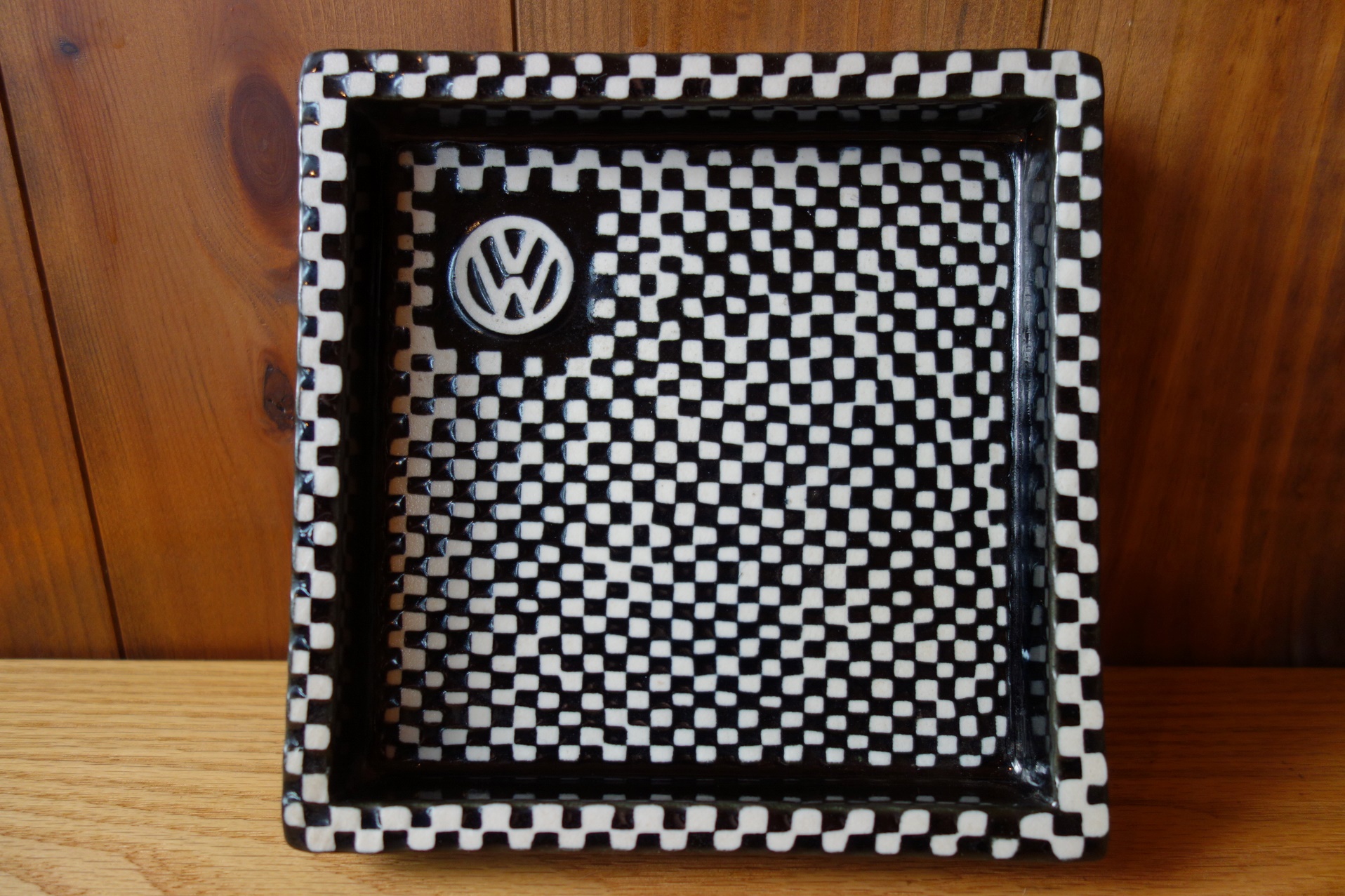 スウェーデンのアーティスト Stig Lindberg のDOMINOシリーズのノベルティ灰皿です。チェスのような格子柄のDOMINOシリーズの灰皿はロゴ無しも存在しますが、ノベルティアイテムとして様々な企業とのコラボレーション作品も多くあります。今回の物はVolks Wagenのロゴ入りです。