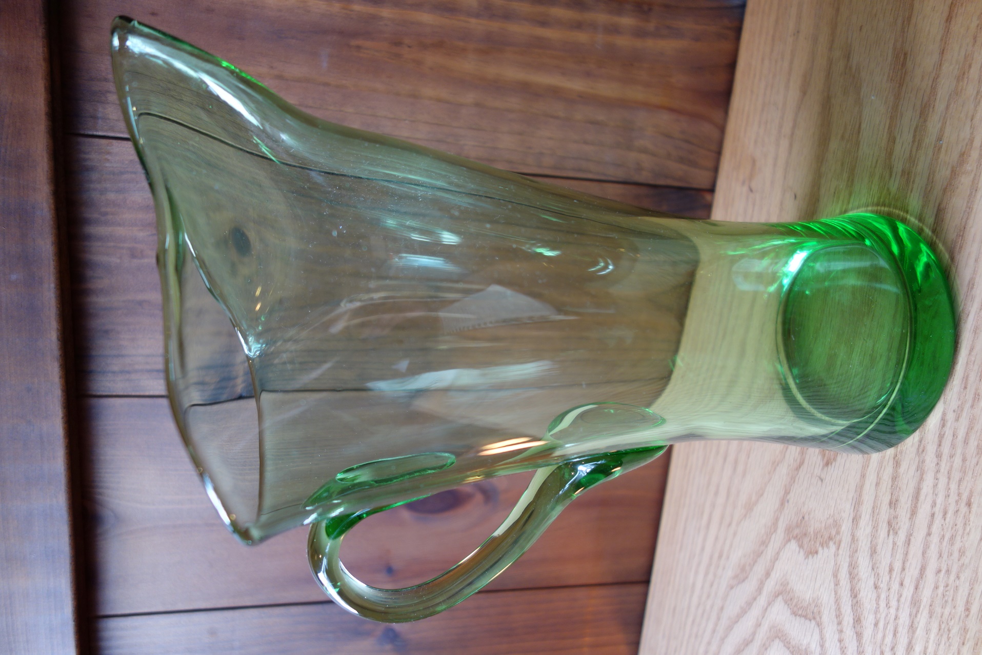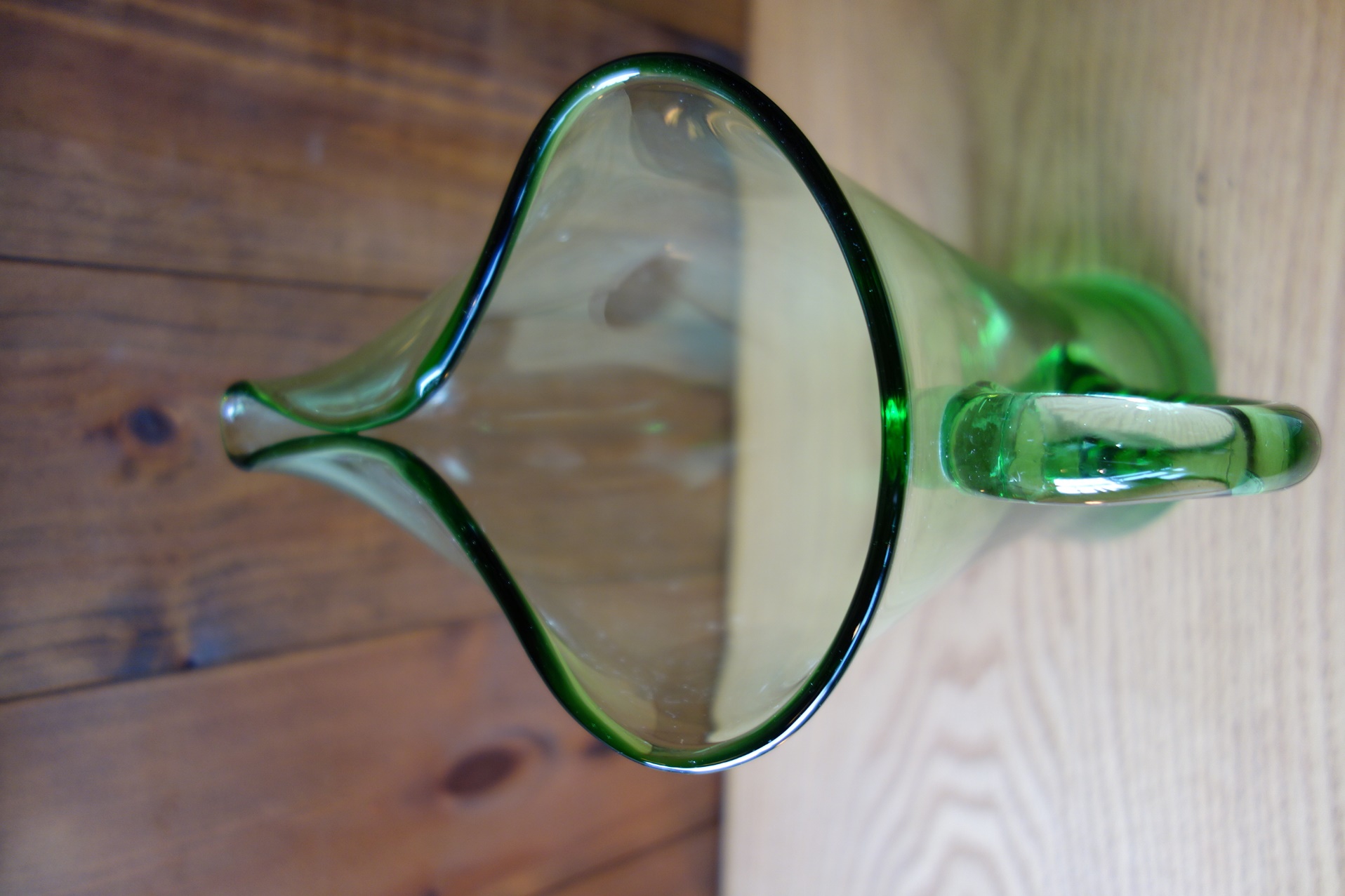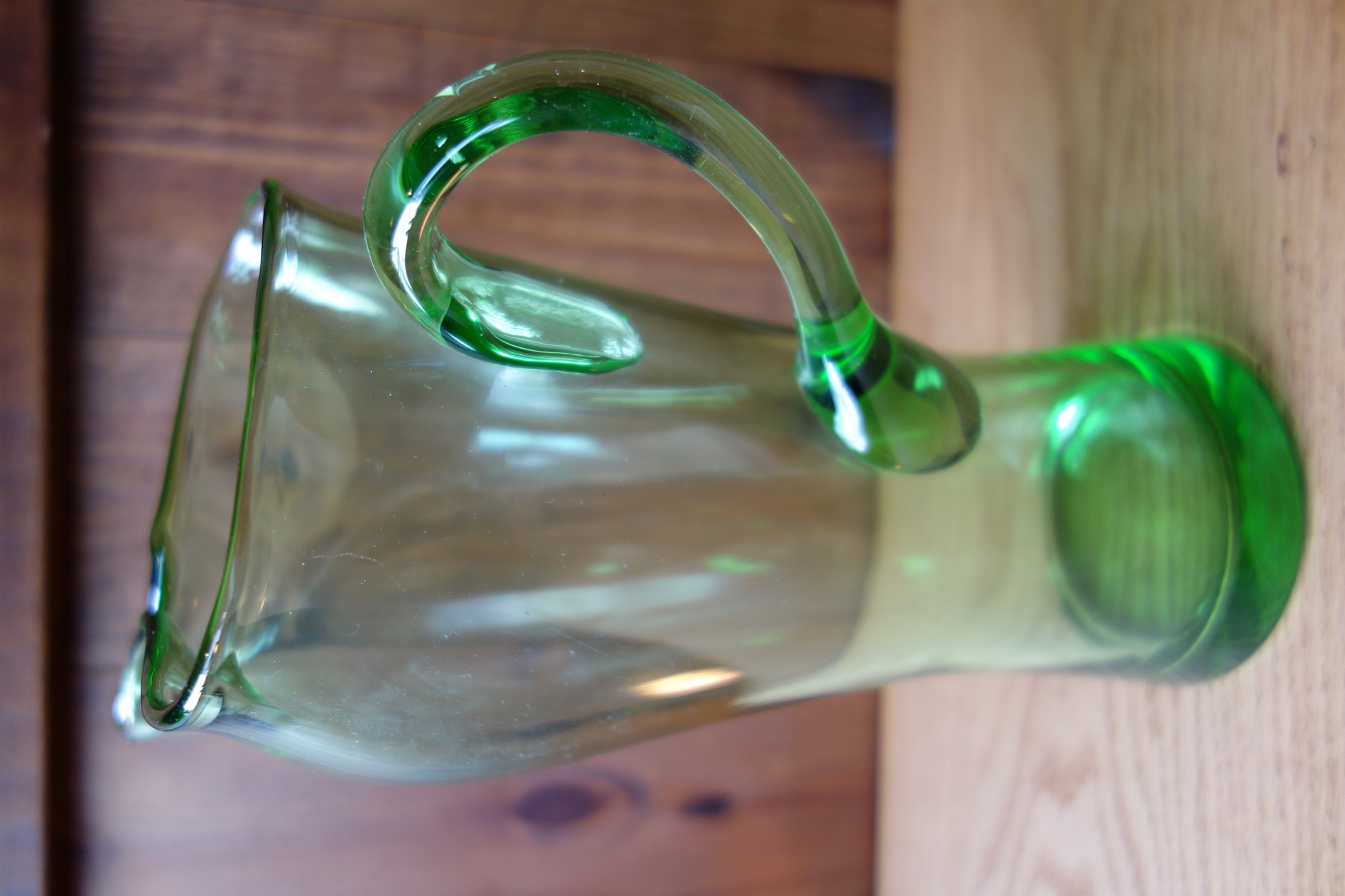デンマークで見つけた非常に美しいフォルムの水差しです。「Holmegaard社」の物かと思われ、デザイナーは定かではありませんが「Per Luttken」かと思います。