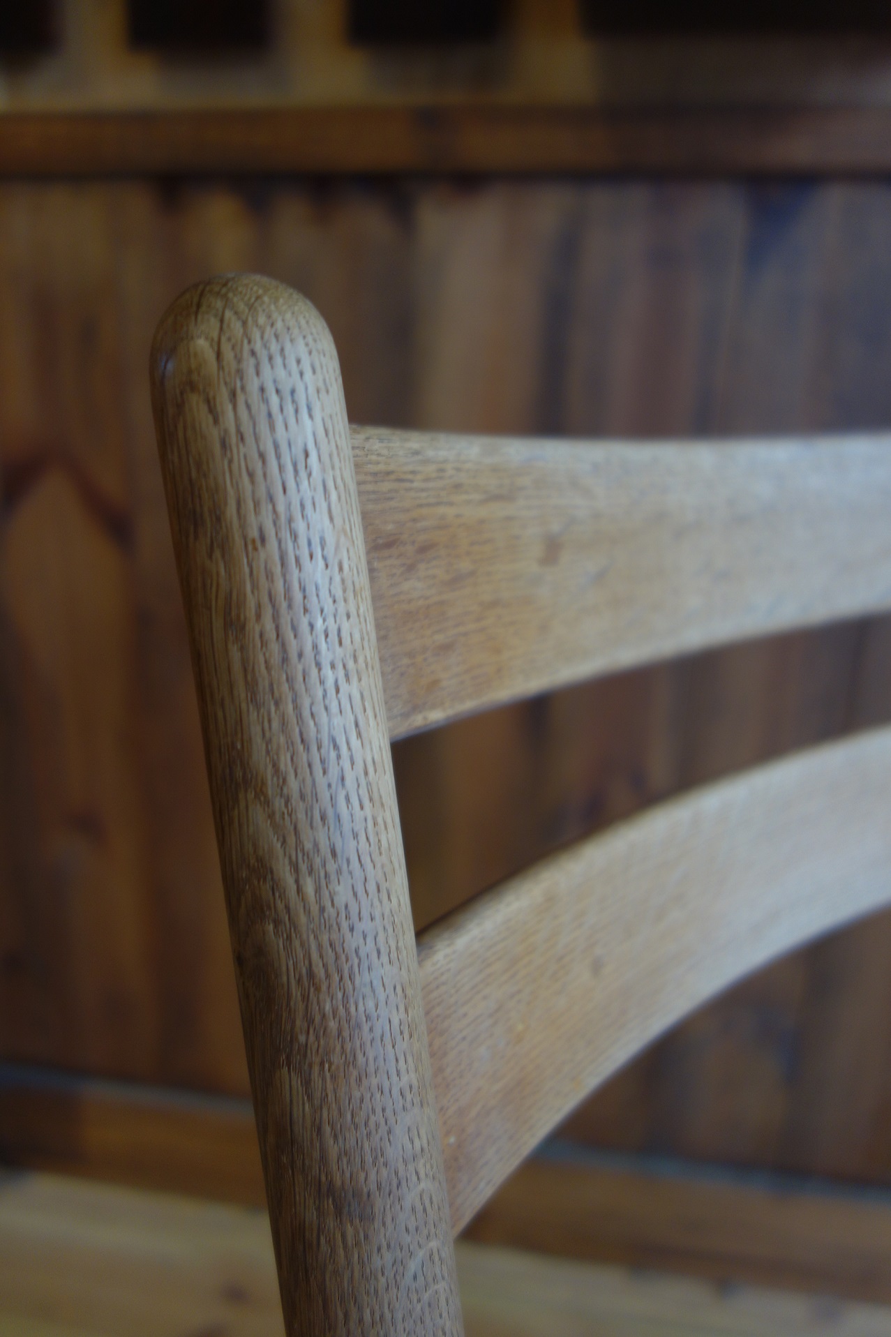とにかく頑丈で機能的な椅子は、その分、修理もし易い構造となっています。長く使う事を考えた椅子と言えます。素材は楢材で、仕上げ直すと、美しいオールドオークの色に仕上がります。