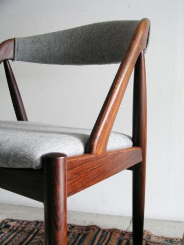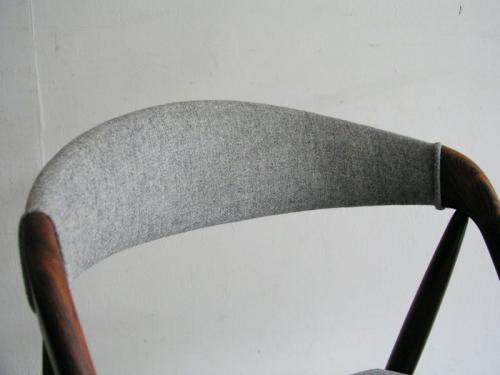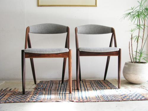 カイ・クリスチャンセンがデザインしましたダイニングチェア/NV-31の2脚セットです。 背は貴重なロ-ズウッド。背と座はメルトン素材の生地にて張替しました。 座面も比較的広く、湾曲した背がひじ掛け替わりとなり座り心地も良好です。 横幅(W)500mm ×奥行(D)505mm ×高さ(H)755mm ×座高(SH)455mm 【カントリー / デザイナ-】 Denmark /Kai Kristiansen Price : Sold/完売いたしました
