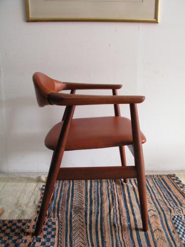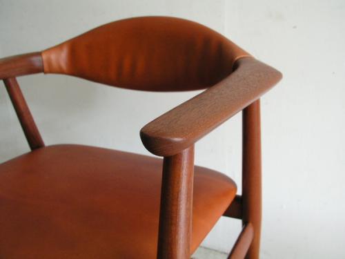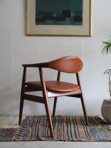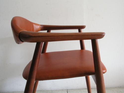 デンマ-ク人デザイナ-、エリック・キルケゴ-がデザインしたア-ムグチェアです。 フレ-ムの材質はチ-ク材。背と座は本革(ヌメ革)にて張替済み。 黒革で張替した同じ椅子もあります。 横幅(W)620mm ×奥行(D)535mm ×高さ(H)720mm ×座高(SH)445mm 【カントリー/デザイナ-】 Denmark/Erik Kirkegaard 【価格】完売いたしました