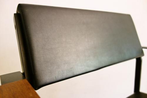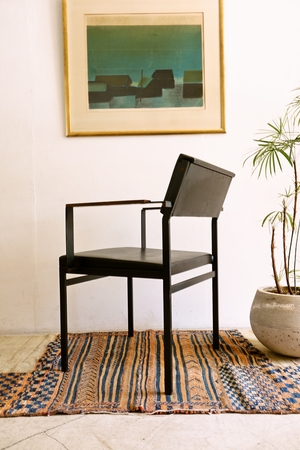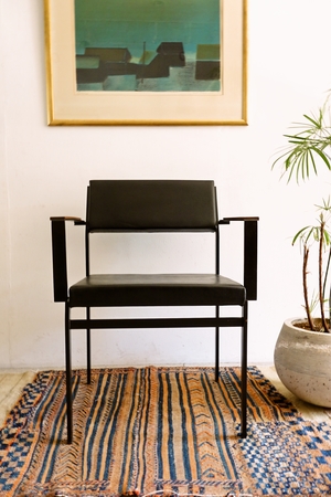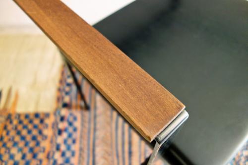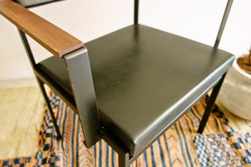 金属のフレ-ムに合皮の背と座。ア-ムには木材が使われています。