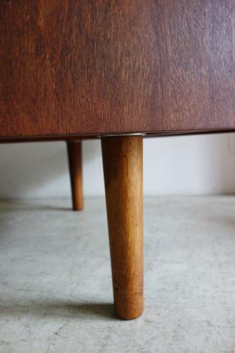メインの木材はチーク材、ベース部分・脚はオーク材、背面はラワン合板となります。