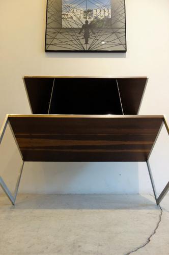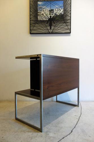 本体は希少な木材「Rosewood」を使用し、脚はヘアライン仕上げのステンレス材。