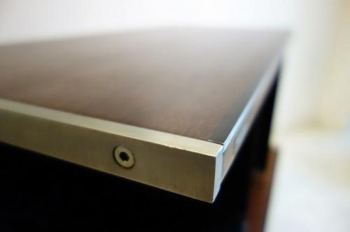 エッジの部分はアルミ材でカバーされ、深みのあるローズウッドと金属の組み合わせが