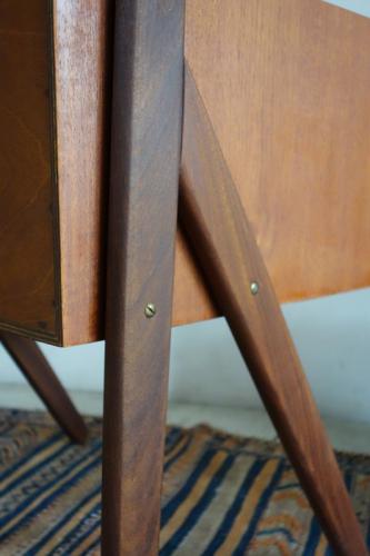 今回の物は、非常に造りが良く、チークの無垢材を所々使ったり、脚にはマホガニー無垢材を使ったり、