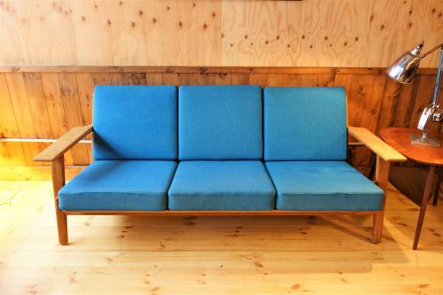 Sold/GE240 3 Seater Sofa/Oak Frame by Hans J.Wegner