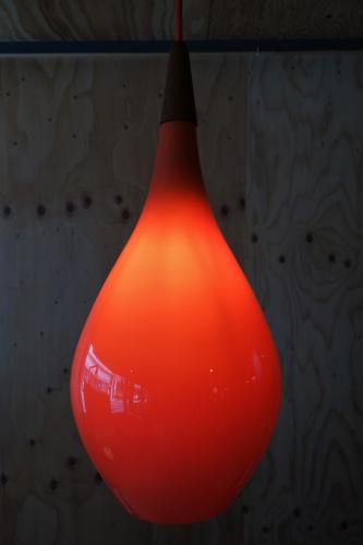 Sold/Red "Teardrop" Glass Shade Hanging Lamp by Holmegaard