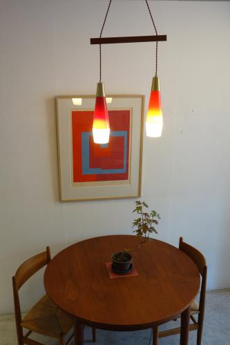 Sold/Vintage Twin Red Glass Cone Shade Hanging Lamps from Denmark