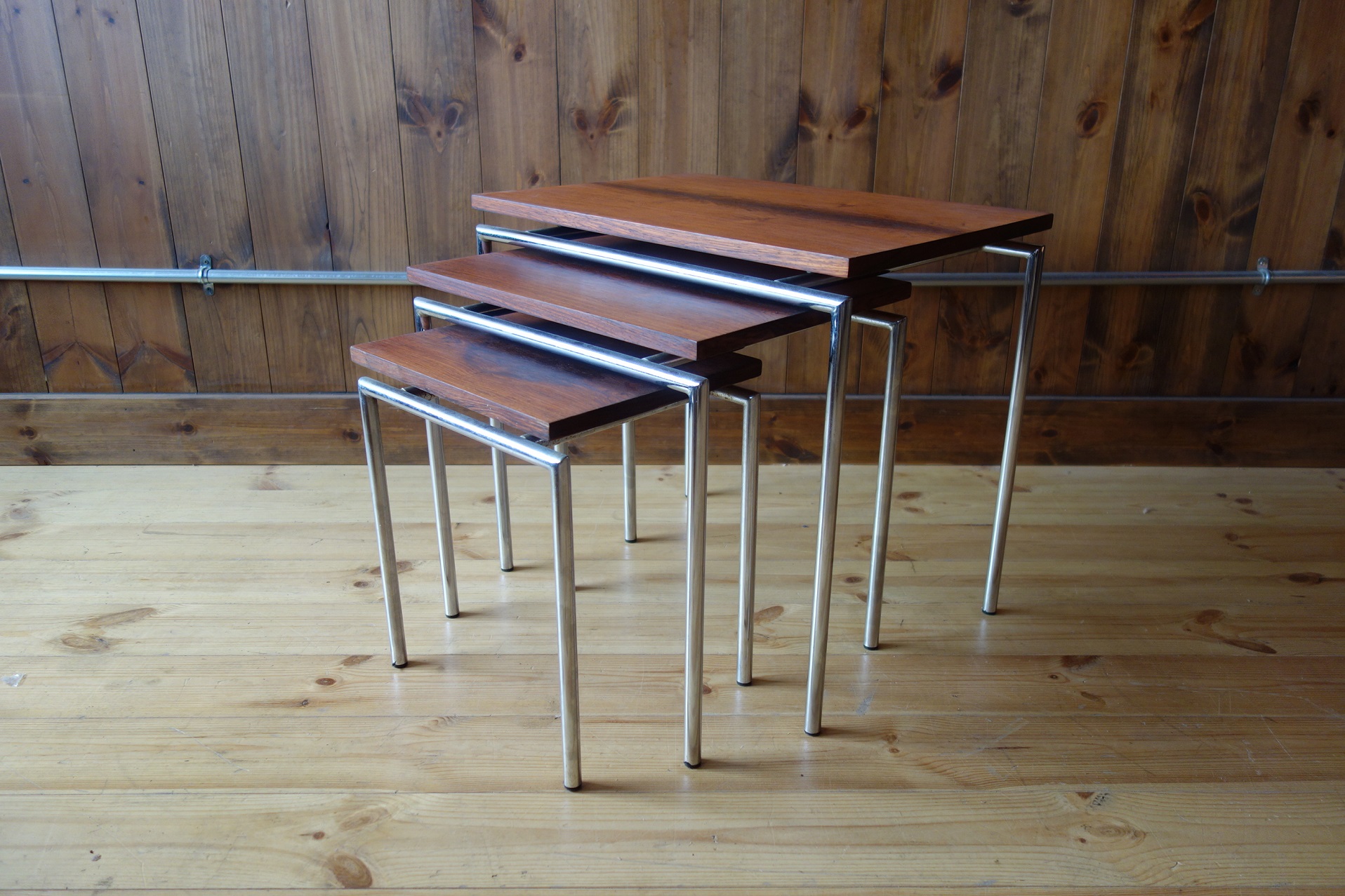 Sold/Vintage Rosewood/Steel Legs Nesting Tables from Denmark