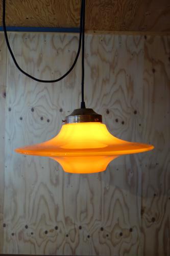 Sold/Orange Glass "UFO" Shade Hanging Lamp from Denmark